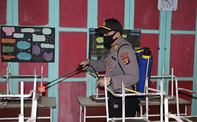 Polisi Lakukan Penyemprotan Disinfektan di Sekolah