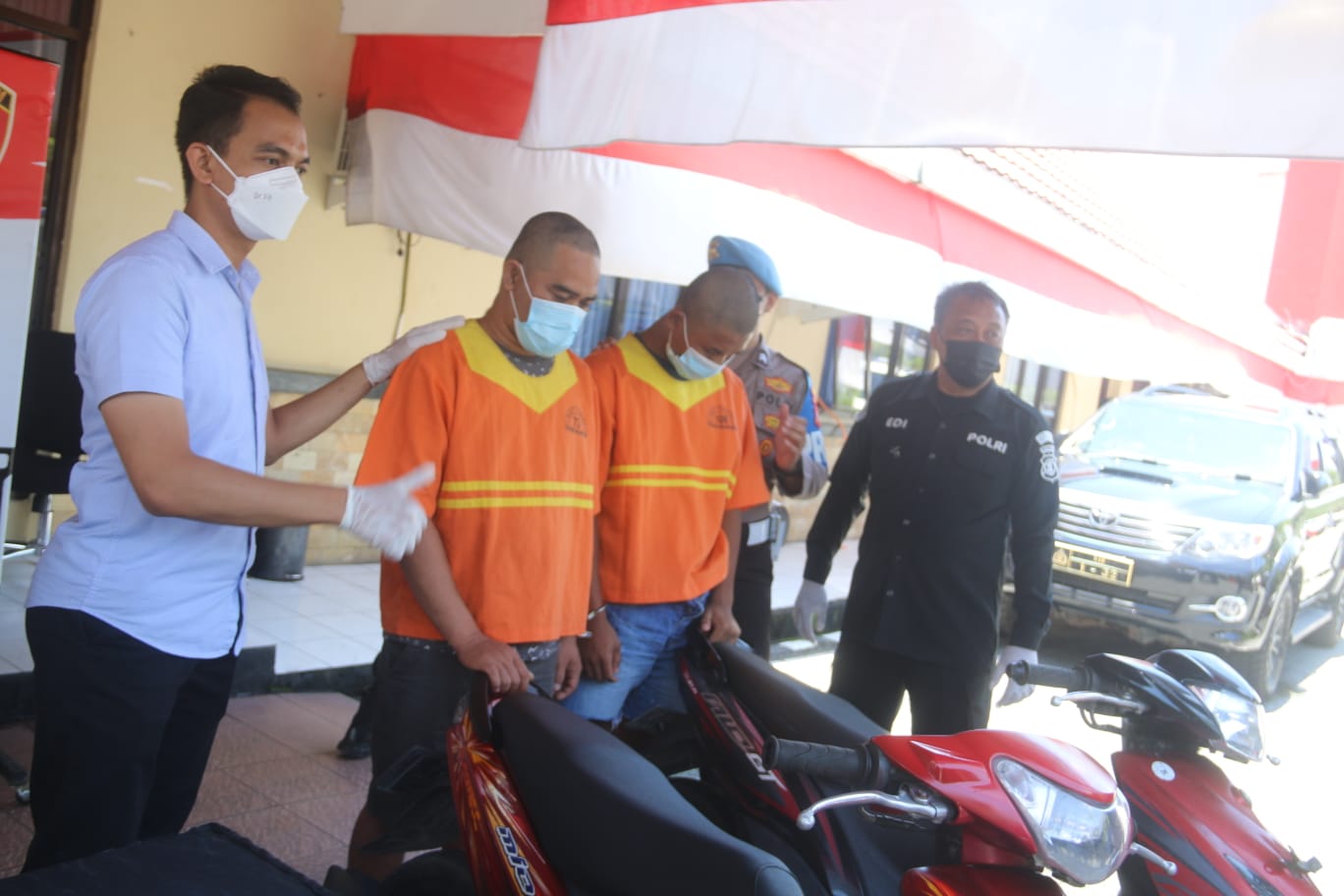 Atas kasus tersebut, para pelaku dikenakan 363 KUHP dengan ancaman hukuman diatas 7 tahun penjara. “Masyarakat harus waspada dengan aksi pencurian kendaraan,” ujarnya.