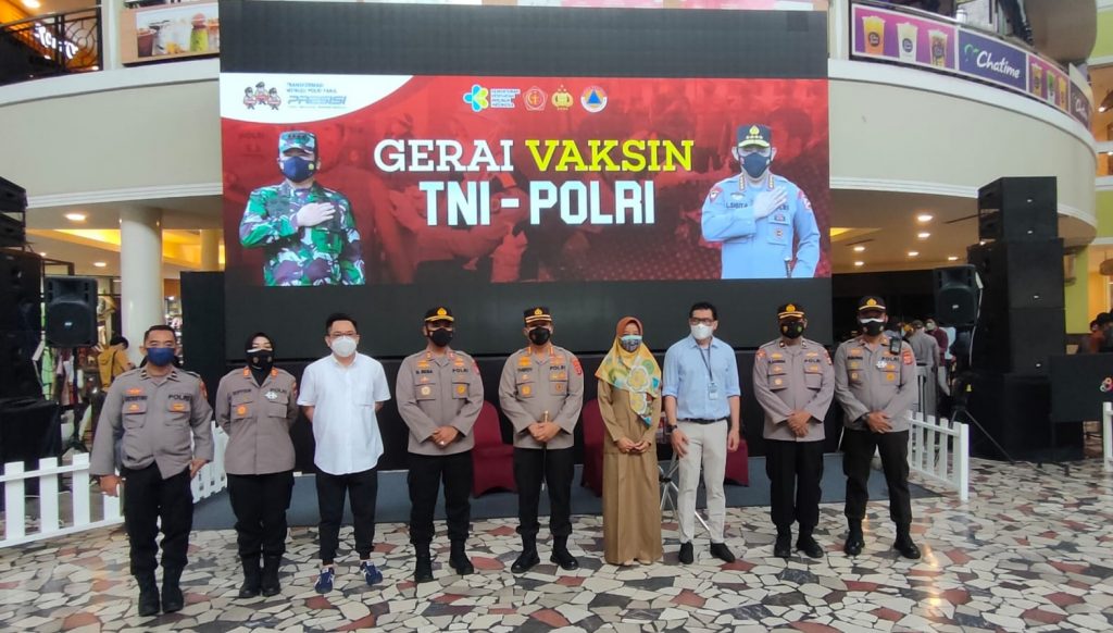 BALIKPAPAN, Inibalikpapan.com — Program vaksinasi yang dilaksanakan Polresta Balikpapan sedikit berbeda hari ini (30/8/2021). Vaksin TNI-Polri dengan target capaian 1000 dosis ini digelar di Mall Ewalk, Balikpapan Super Blok dengan sasaranwarga pekerja yang ber- KTP luar Balikpapan.
