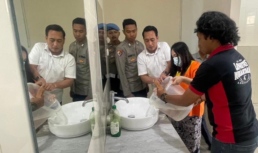Pemusnahan pemusnahan dilakukan dengan cara semua barang bukti sabu dilarutkan di dalam toples plastik berisi air hangat dan dibuang wastafel dan masuk ke kloset.