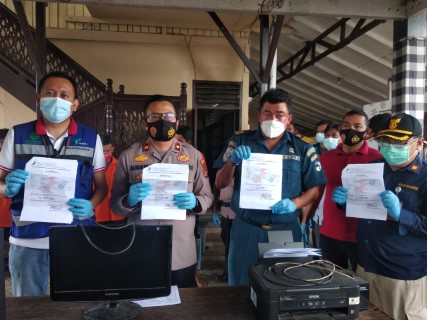Dari para pelaku, petugas mengamankan barang bukti diantaranya empat unit handphone, uang tunai Rp 425 ribu, empat lembar surat tapid test palsu, kayar minitor, CPU Komputer, Keyboard, mous, printer serta lima lembar surat kartu kewaspadaan.