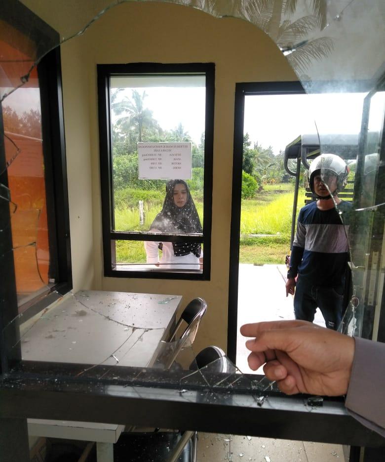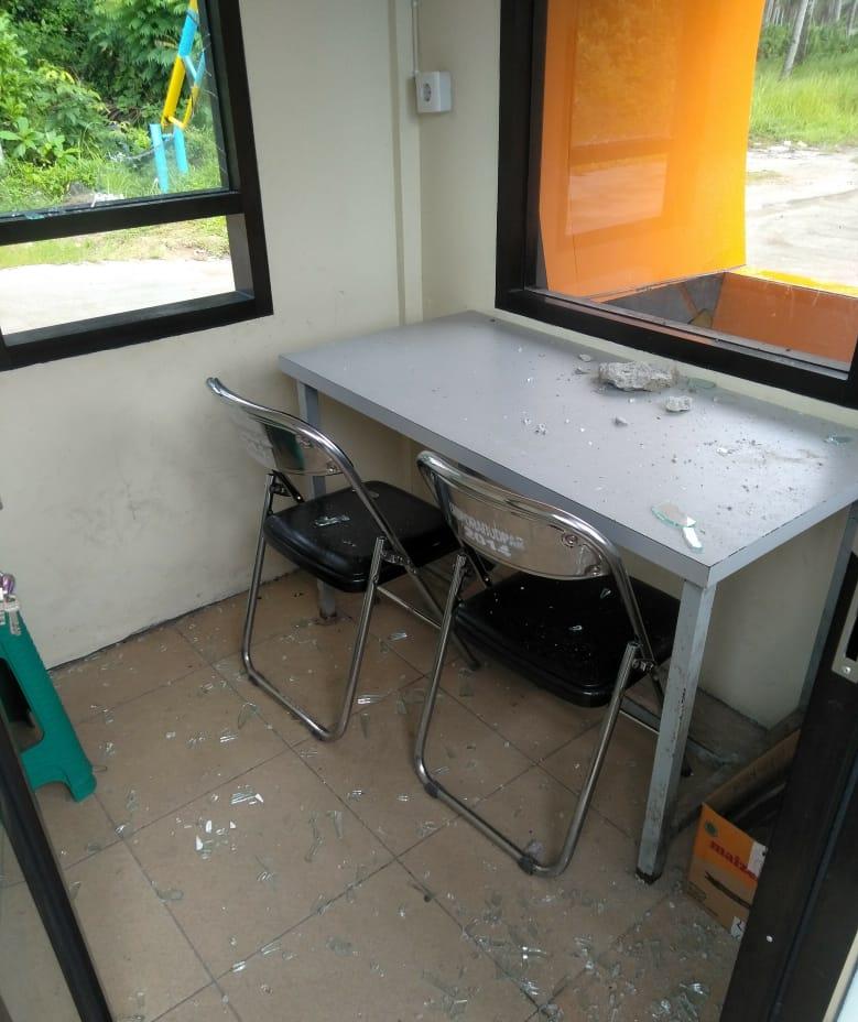 “Kaca itu dilempar batu, pecah hampir seluruhnya. Ada kursi meja dan juga stop kontak listrik juga ikut dirusak, kerugiannya bisa mencapai puluhan juta. Akibat pengerusakan itu,” ujar Rusli.