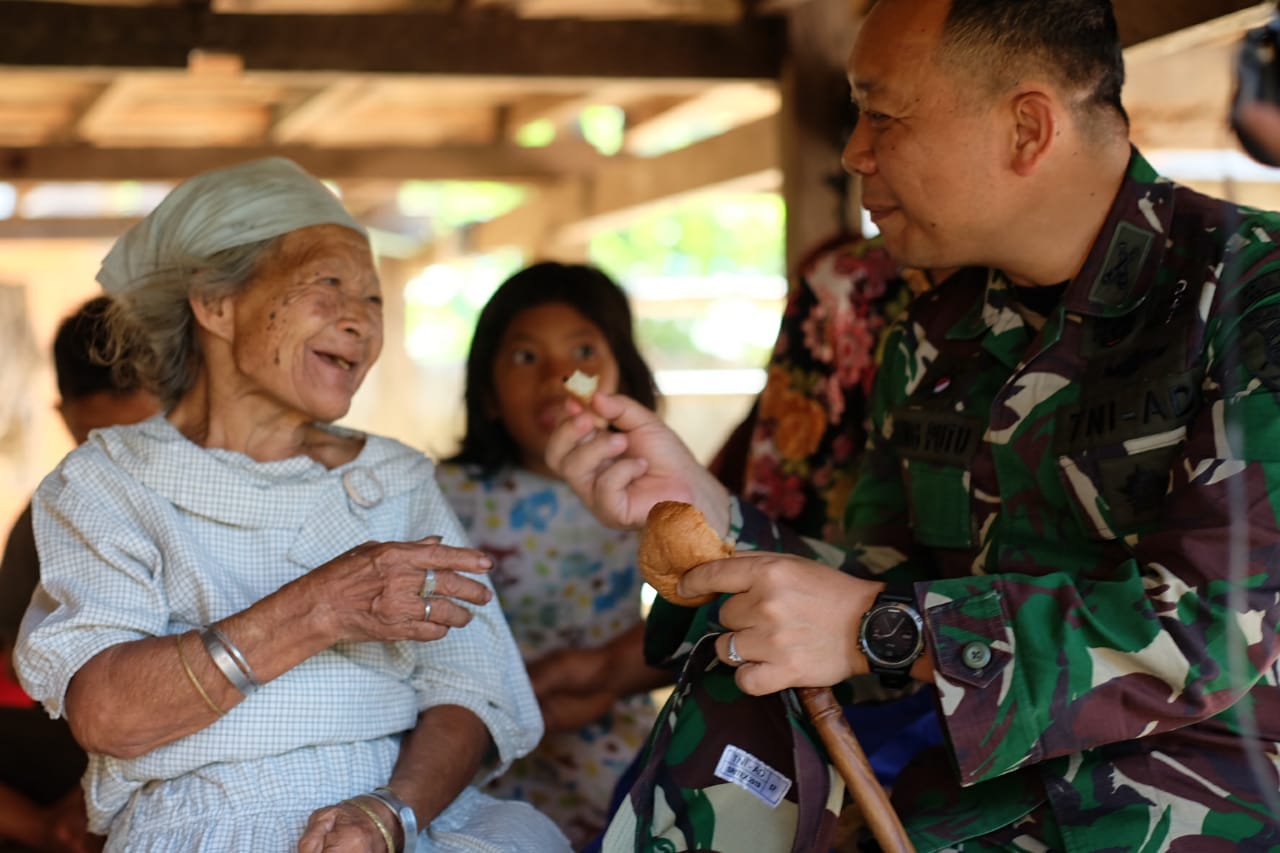 Potret Kebahagiaan TNI dan Warga Saat Makan Bersama di Lokasi TMMD 107