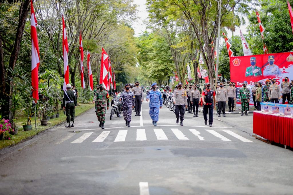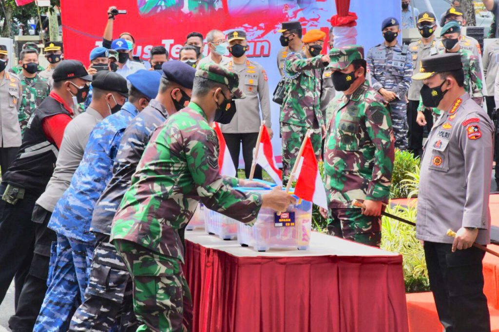 Panglima TNI Marsekal Hadi Tjahjanto dan Kapolri Jenderal Listyo Sigit Prabowo saat melepas pembagian bansos