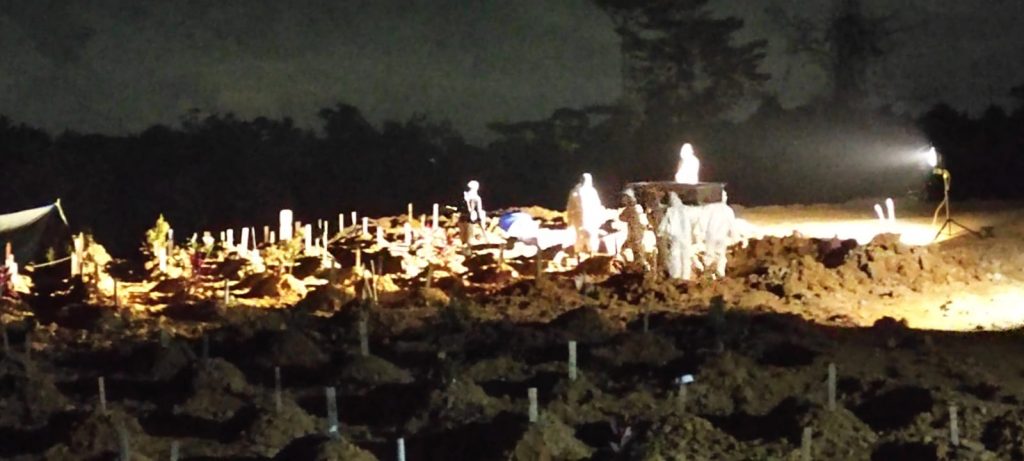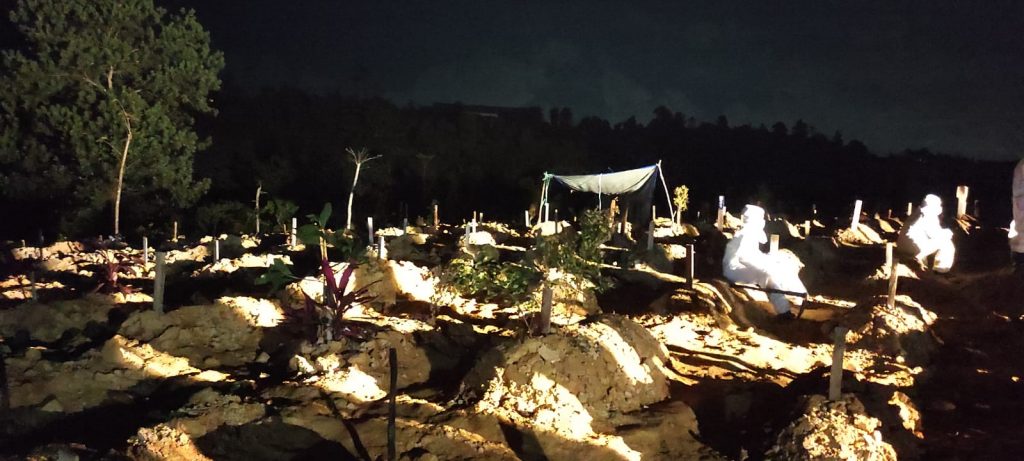 Rata-rata setiap harinya puluhan orang yang meninggal dunia karena terpapar covod-19. Sehingga para penggali kubur harus bekerja hingga tengah malam, seakan tiada henti.