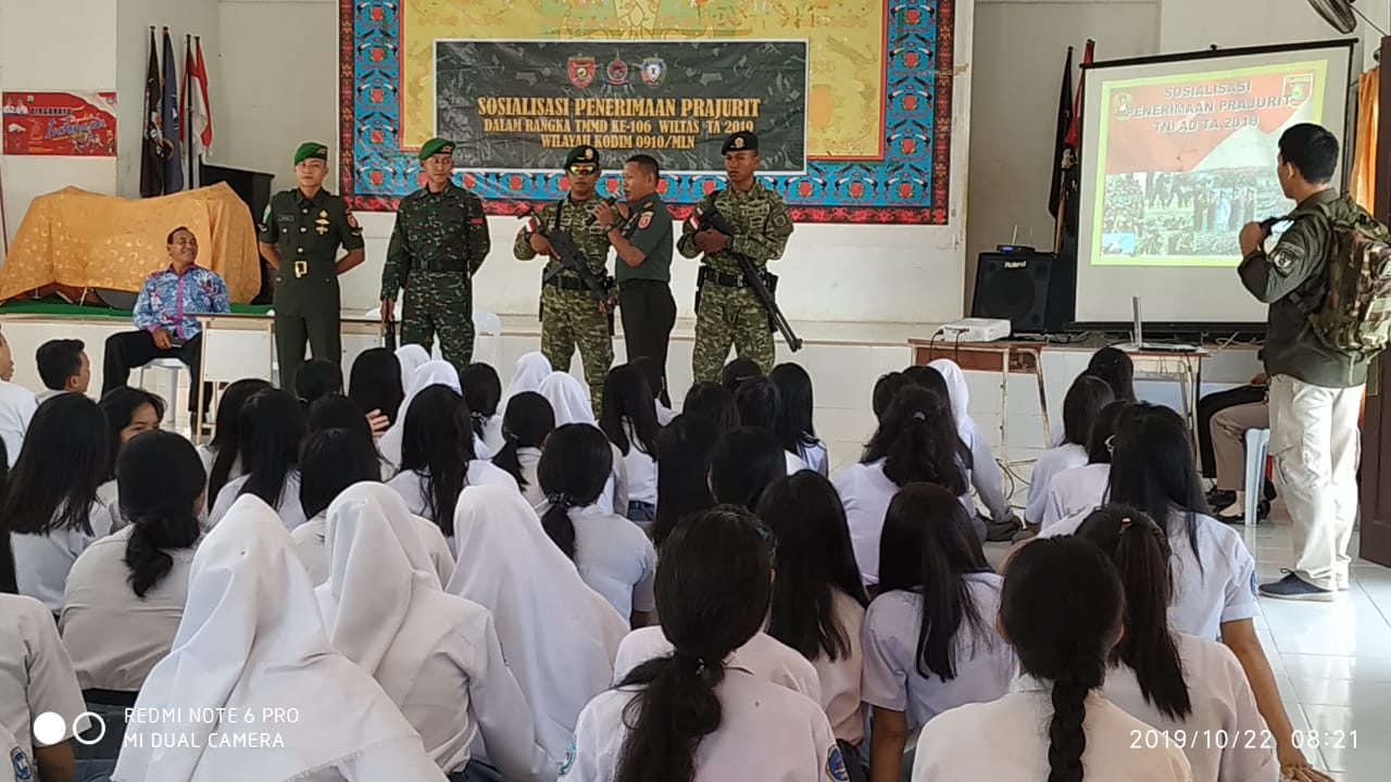 MALINAU, inibalikpapan.com — Satgas TMMD 106 Wilayah Perbatasan Kodim 0910/Malinau Ta 2019 kembali melaksanakan sosialisasi penerimaan prajurit TNI di SMAN 8 Malinau.