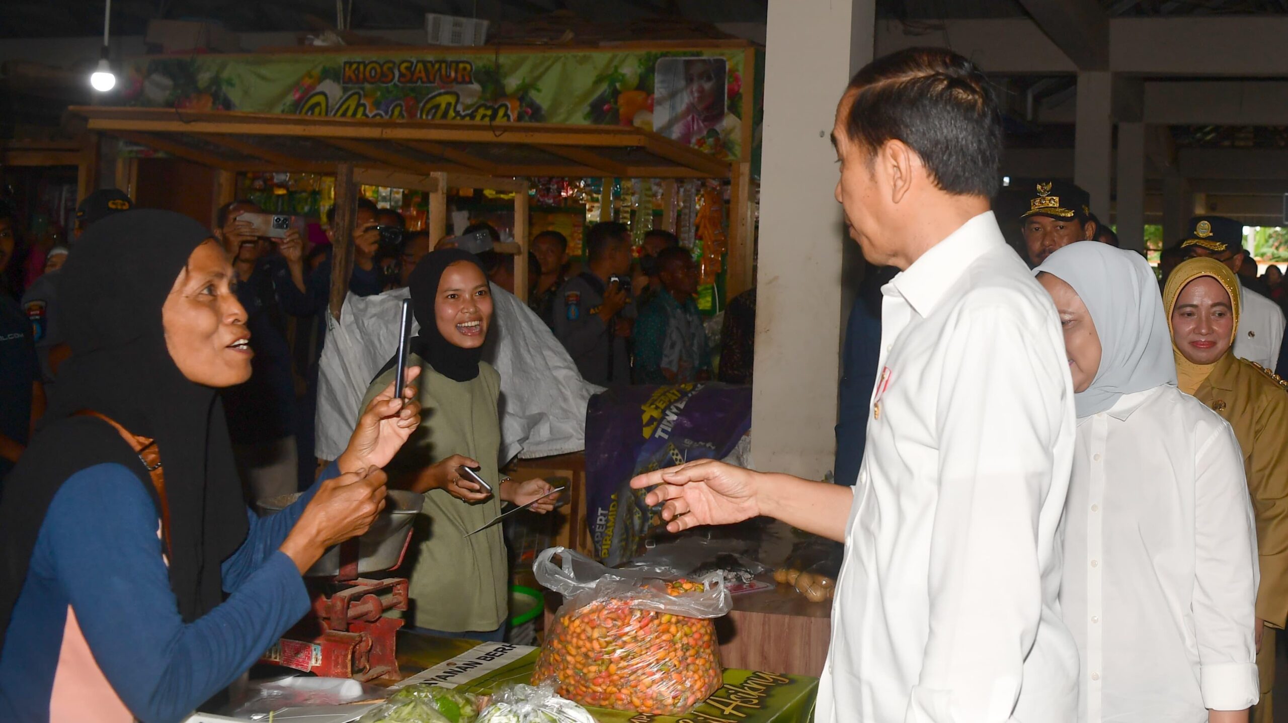 Kehadiran Presiden dan Ibu Iriana disambut antusiasme pedagang dan masyarakat yang sedang berbelanja di sana. Tampak, yang pertama Presiden dan Ibu Iriana beli adalah cabai rawit.