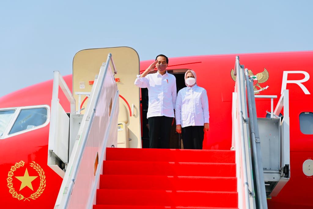Presiden Jokowi dan Ibu Iriana menuju Solo melalui Bandara Halim Perdanakusuma diantar Menteri BUMN Erick Thohir dan Penjabat Gubernur DKI Heru Budi.
