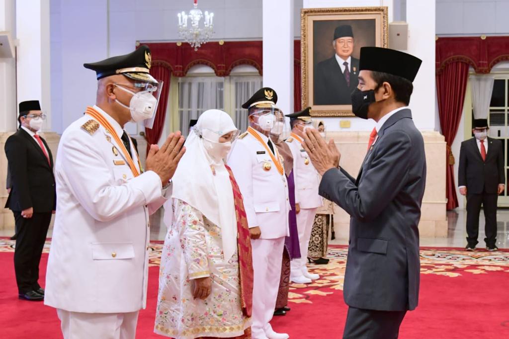 JAKARTA, Inibalikpapan.com – Presiden Joko Widodo melantik tiga pasang gubernur dan wakil gubernur terpilih pada Kamis, 25 Februari 2021. Acara pelantikan tersebut berlangsung di Istana Negara, Jakarta, dengan menerapkan protokol kesehatan secara ketat.