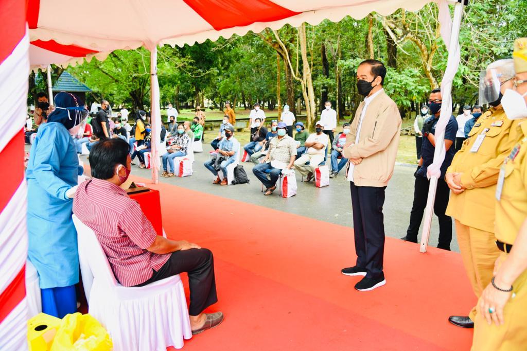Presiden pun berdialog melalui konferensi video dengan perwakilan sembilan kabupaten dan kota tersebut. Dalam dialog tersebut, Presiden mengapresiasi kecepatan pemerintah daerah dalam melakukan vaksinasi di daerah masing-masing.