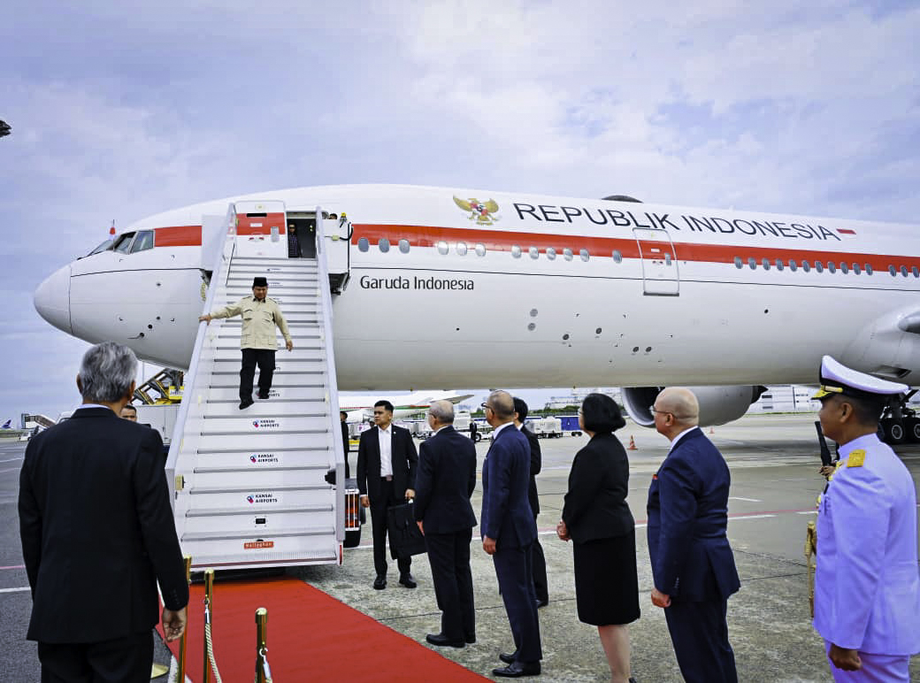 Presiden Prabowo mendarat di Bandar Udara Internasional Kansai sekitar pukul 08.30 waktu setempat. Ia disambut Kuasa Usaha Ad Interim KBRI Tokyo Maria Renata Hutagalung, Konsul Jenderal RI di Osaka John Tjahjanto Boestami, serta Atase Pertahanan RI Tokyo Laksamana TNI Hidayaturrahman.