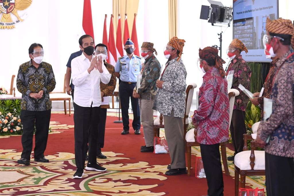 JAKARTA, Inibalikpapan.com Presiden Joko Widodo menyerahkan 124.120 sertifikat tanah hasil redistribusi di 26 provinsi dan 127 kabupaten/kota di seluruh Indonesia. Penyerahan sertifikat digelar di Istana Kepresidenan Bogor, Jawa Barat, pada Rabu, (22/09/2021) kemarian