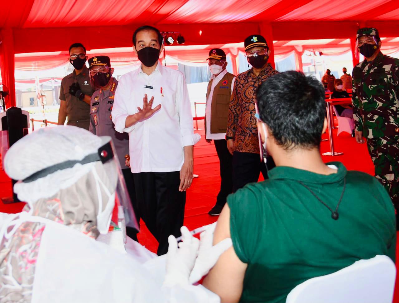 Hal tersebut disampaikan Presiden dalam keterangan pers usai meninjau vaksinasi Covid-19 massal di Lapangan Bhayangkara Mabes Polri, Jakarta Selatan, pada Sabtu (26/06/ 2021).