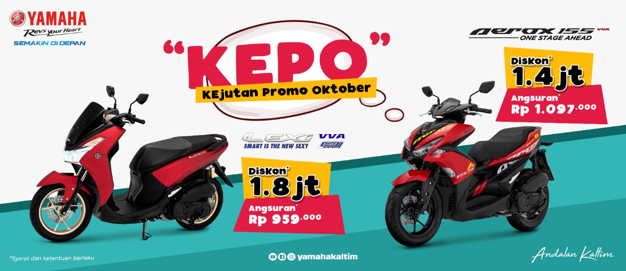 Deangan program KEPO ini bisa Anda manfaatkan untuk membeli motor baru. Dapatkan segera Promo Spektakuler Yamaha Kaltimtara selama periode Oktober 2020 di dealer Yamaha terdekat.