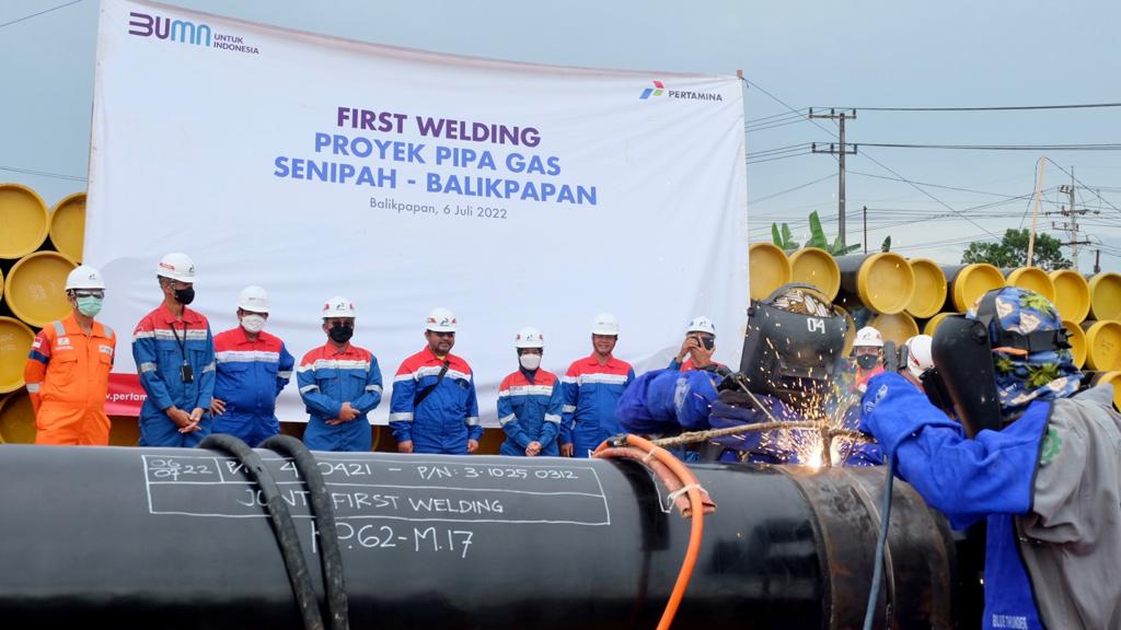 BALIKPAPAN, Inibalikpapan.com – Berangkat dari kolaborasi Sub Holding Gas dan Sub Holding Refining & Petrochemical Pertamina dalam pengembangan proyek pipa gas Senipah-Balikpapan, dilakukan pengelasan pertama (first welding) sambungan pipa di Stockyard Jalan Pulau Balang KM 13 Kota Balikpapan, Rabu (06/07/2022).