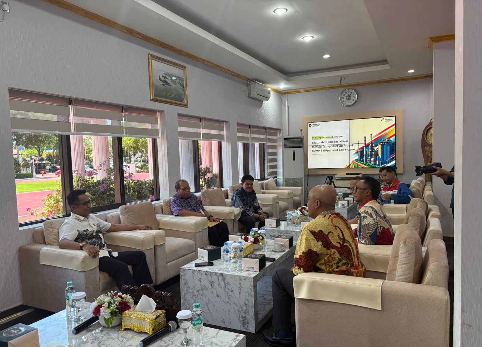 BALIKPAPAN, inibalikpapan.com — Pemerintah Kota Balikpapan menerima kunjungan silaturahmi sekaligus sosialisasi persiapan menuju fase operasi Proyek Strategis Nasional (PSN) Refinery Development Master Plan (RDMP) Balikpapan–Lawe-Lawe di ruang tamu Kantor Wali Kota, Kamis (6/11). Pertemuan dihadiri jajaran manajemen Pertamina bersama Wali Kota Balikpapan.