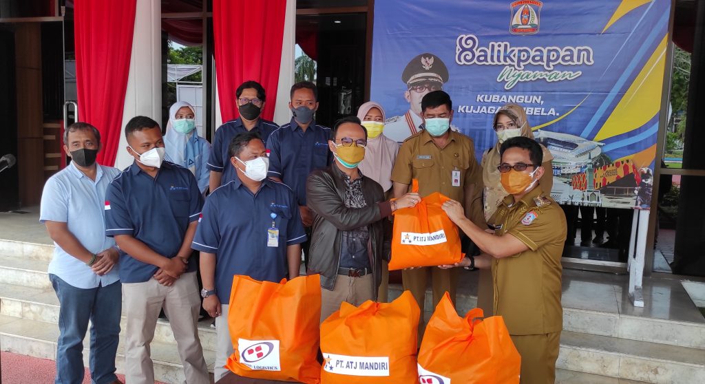 Penyerahan bantuan dilakukan di lobi kantor pemerintah kota, dilakukan Direktur Utama PT ATJ Mandiri Agung Tri Hartanto kepada Wali Kota Balikpapan Rahmad Mas’ud, Selasa siang (3/8/2021).