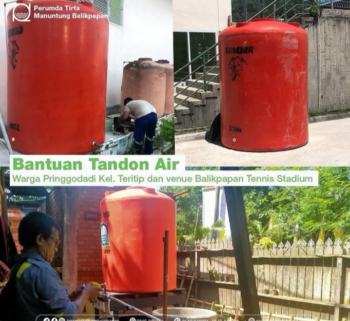 – Tandon air di daerah Warga Pringgodadi Kel. Teritip dan venue Balikpapan Tennis Stadium.