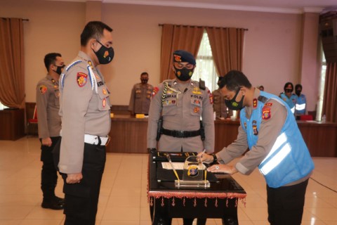 Balikpapan – Untuk menciptakan proses seleksi yang bersih, transparan, akuntabel, unggul dan kompetitif, Kapolda Kaltim Irjen Pol. Drs. Herry Rudolf Nahak, M.Si., memimpin penandatanganan Pakta Integritas dan pengambilan sumpah seleksi calon peserta pelatihan kepemimpinan Nasional (PKN) Tingkat II dan seleksi Pendidikan S-I STIK-PTIK Angkatan ke -79 T.A 2021 serta penandatanganan pakta integritas panitia dan peserta, Rabu (24/2/2021).