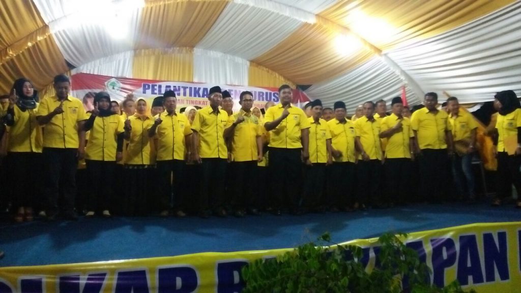 Pelantikan ditandai dengan penyerahan bendara pataka Partai Golkar dari ketua Rahmad Mas’ud kepada ketua Golkar tingkat Kecamatan Fauzi Adi Firmansyah.