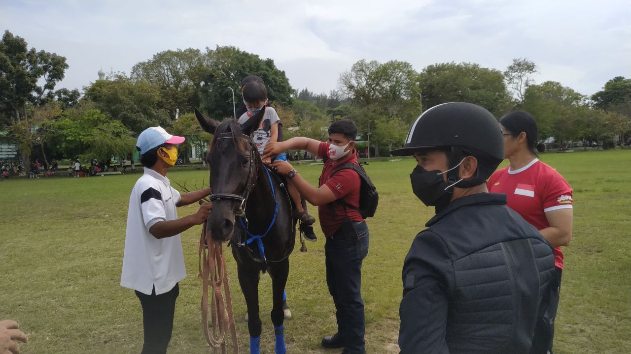 Kehadiran dua kuda bernama Maimun dan Amira langsung diserbu Anak-Anak bersama orang tuanya. Ada yang antusias tapi ada juga yang takut menaiki kuda. Paling tidak Anak-Anak bersama orang tua bisa berfoto bersama.