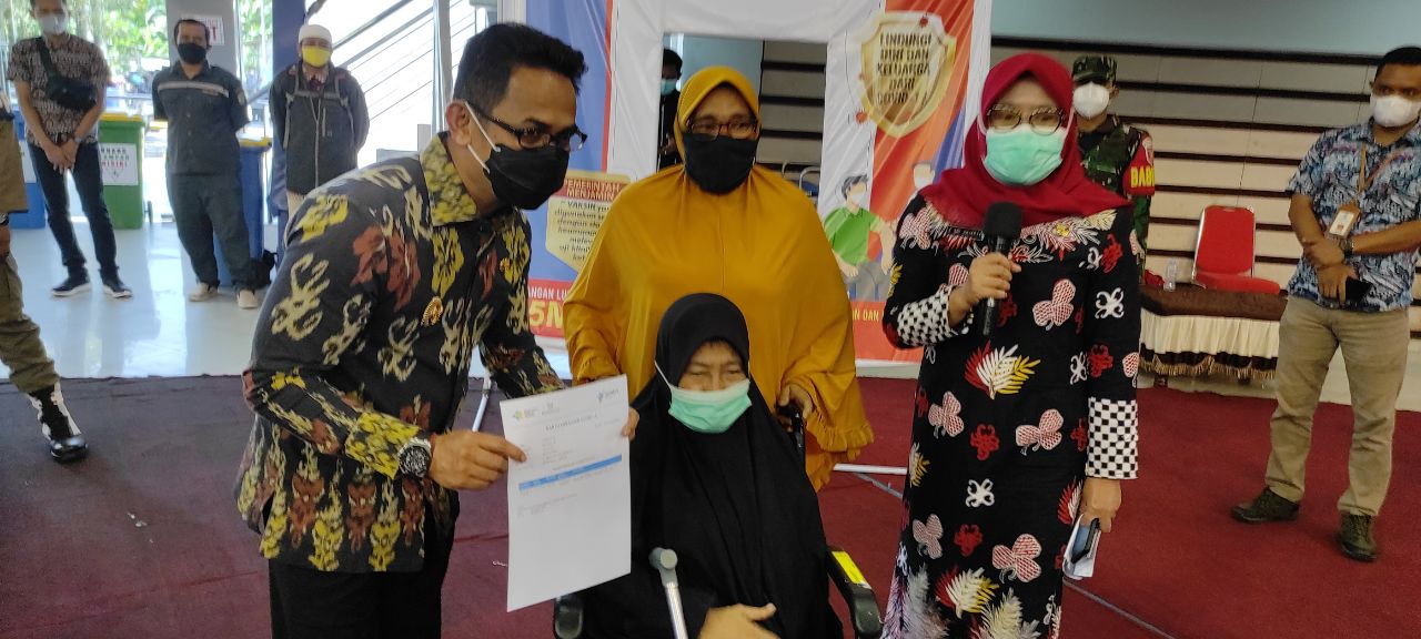 Rahmad Mas’ud memberikan apresiasi atas pelayanan yang makin cepat mudah dan tidak banyak meja. Wali Kota juga sempat berdialog singkat dengan peserta yang menggunakan kursi roda. “Sudah divaksin bu,” tanya Rahmad kepada peserta.