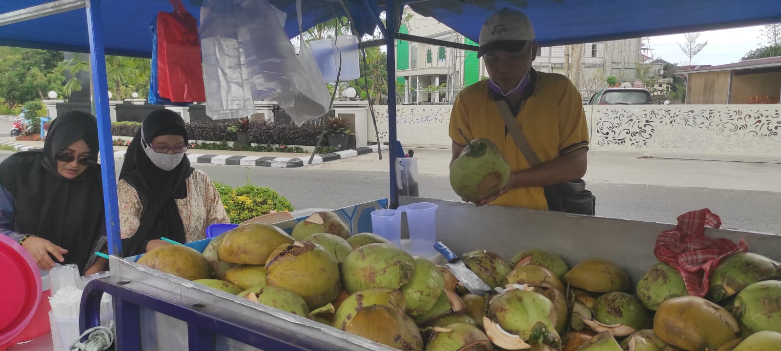 “Alhamdulillah di Balikpapan kan cuacanya kadang panas terik, jual es kelapa disini cukup laris,” ujar Kurnia yang mendatangkan buah kelapa dari daerah Samboja.