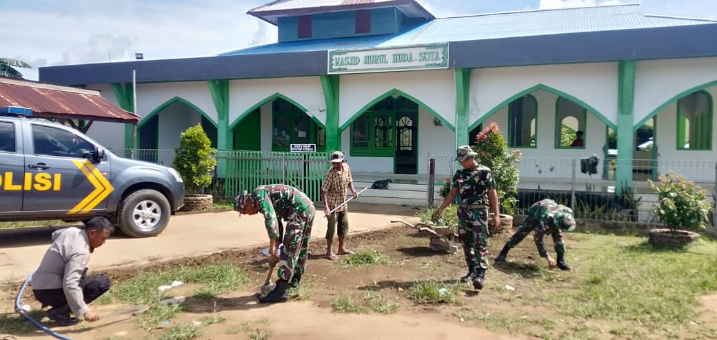 MERAUKE, Inibalikpapan.com – Dalam rangka menyambut bulan suci Ramadhan 1442 H Satgas Yonif 611/Awang Long Pos Komando Utama (Kout) Sota, melaksanakan kegiatan gotong royong membersihkan Masjid Nurul Huda Kampung Sota, Distrik Sota Kabupaten Merauke,