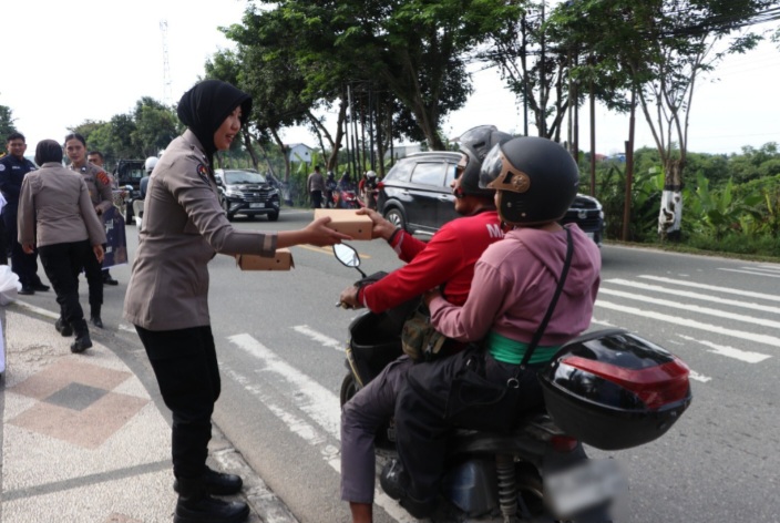 Sebanyak 100 kotak takjil disalurkan kepada masyarakat sebagai wujud kepedulian dan kehadiran Polri di tengah masyarakat, khususnya bagi pengendara, pekerja harian, dan masyarakat yang masih berada di perjalanan saat waktu berbuka tiba.
