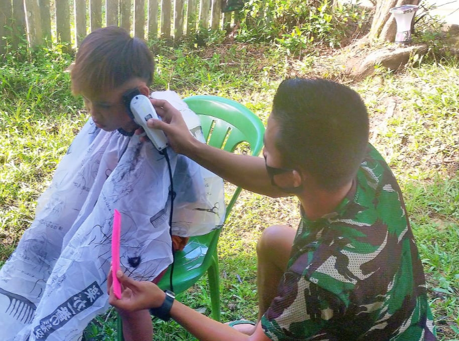 Tapi saat itu ada hal lain yang menarik dimana sejumlah anak kecil di Desa Batu Majang yang mendekat sambil berteriak ” Oom Tentara boleh kah kami dicukur seperti Oom ” seperti yang disampaikan oleh salah satu anak yang bernama Joni, dan pihaknya pun meresponnya dengan baik dan mencukur rambut mereka secara bergantian.