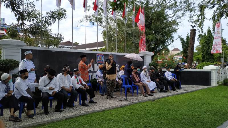 Dalam orasinya, mereka menolak Rancangan Undang-Undang Haluan Ideologi Negara (HIP), yang saat ini masuk dalam Program Legislasi Nasional (Prolegnas). Tampak Ketua MUI Kota Balikpapan KH Hasyim Palenju didampingi Sekretaris MUI Balikpapan Jailani. Aksi diperkirakan diikuti sekitar 600- 700 orang.