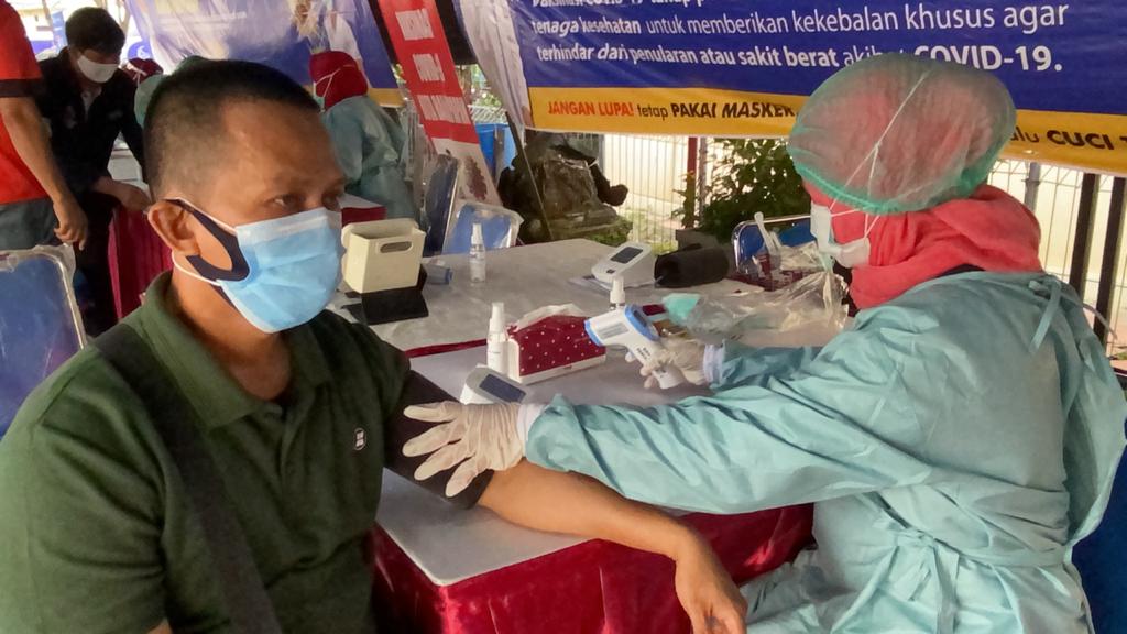 “Jadi bapak-bapak bersyukur satu-aatunya yang didatangi oleh petugas vaksinasi hanya pedagang pasar. Yang yang lainnya harus datang ke puskesmas, rumah sakit, tapi kami menghargai bapak ibu kalau suruh datang ke puskesmas jualan siapa yang jagain, ” kata Rizal menyanjung pedagang.