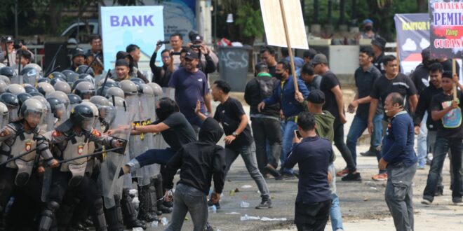 Namun, saat masa pencoblosan dan penghitungan suara mulai lah gesekan-gesekan terjadi hingga bentrok masa pun tak bisa dihindarkan lagi. Namun berhasil diatasi aparat keamanan.