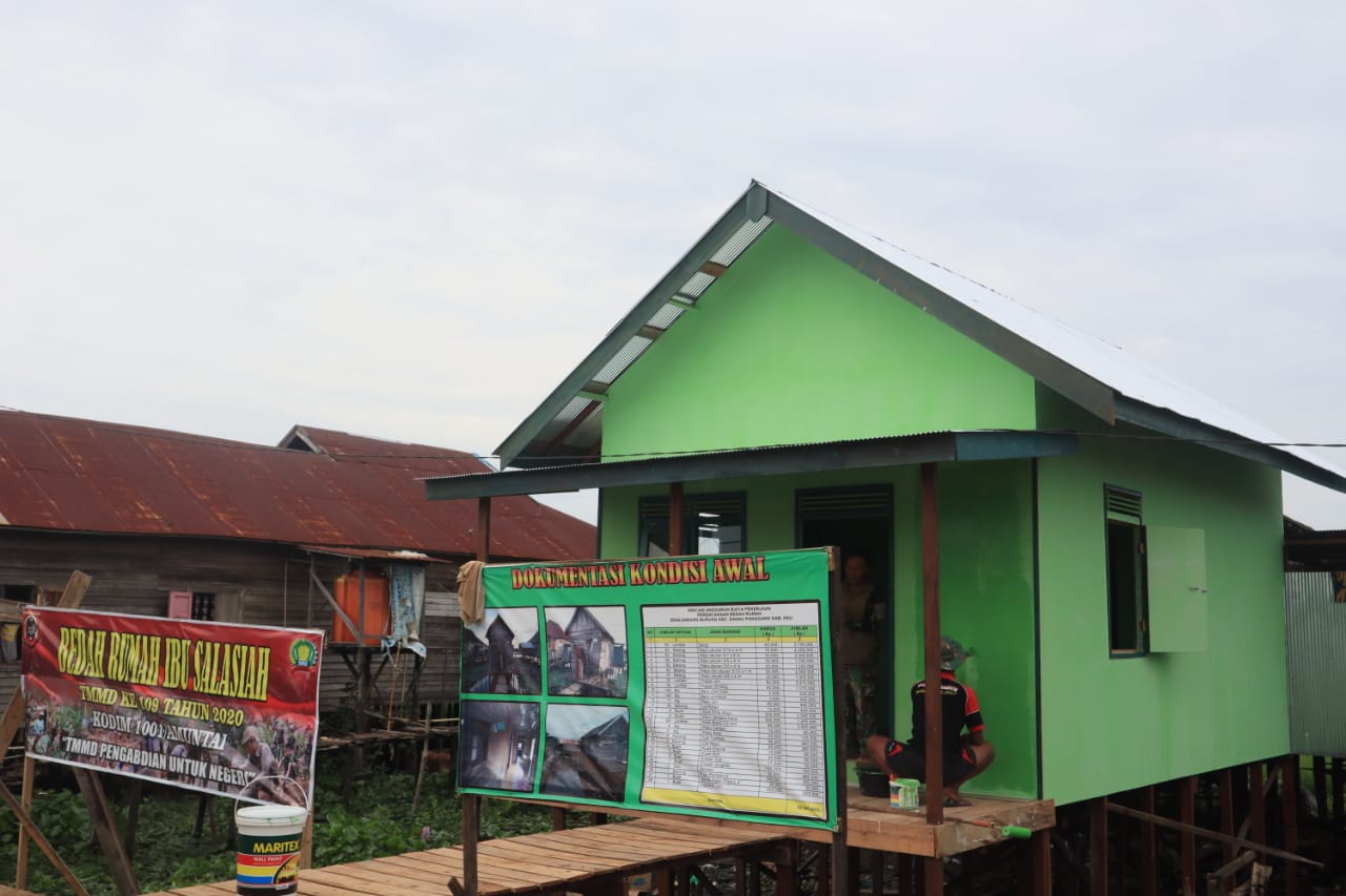 Dan SSK TMMD ke 109 Kapten Inf Mahmud Dalli mengatakan “Pembangunan rumah Ibu Salasiah salah satu warga yang menerima program bedah rumah dari TNI Manunggal Membangun Desa, pada hari ini sudah mencapai 90 Persen,sampai saat ini pengerjaan sudah sampai tahap Pengecetan serta pemasangan Plafon.”