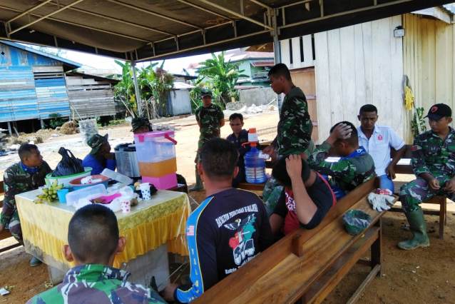 Malinau, inibalikpapan.com — Manunggalnya TNI-Rakyat di desa Respen Tubu bisa dilihat secara kasat mata. Terutama pada saat digelarnya makan bersama di sela-sela perbaikan pagar Gereja setempat. Kondisi seperti inilah yang terekam ketika waktu istirahat personel Satgas TMMD 106 Wiltas Perbatasan tahun 2019 Kodim 0910/Malinau dihabiskan dengan makan snack bareng bersama warga yang ikut membantu pekerjaan.
