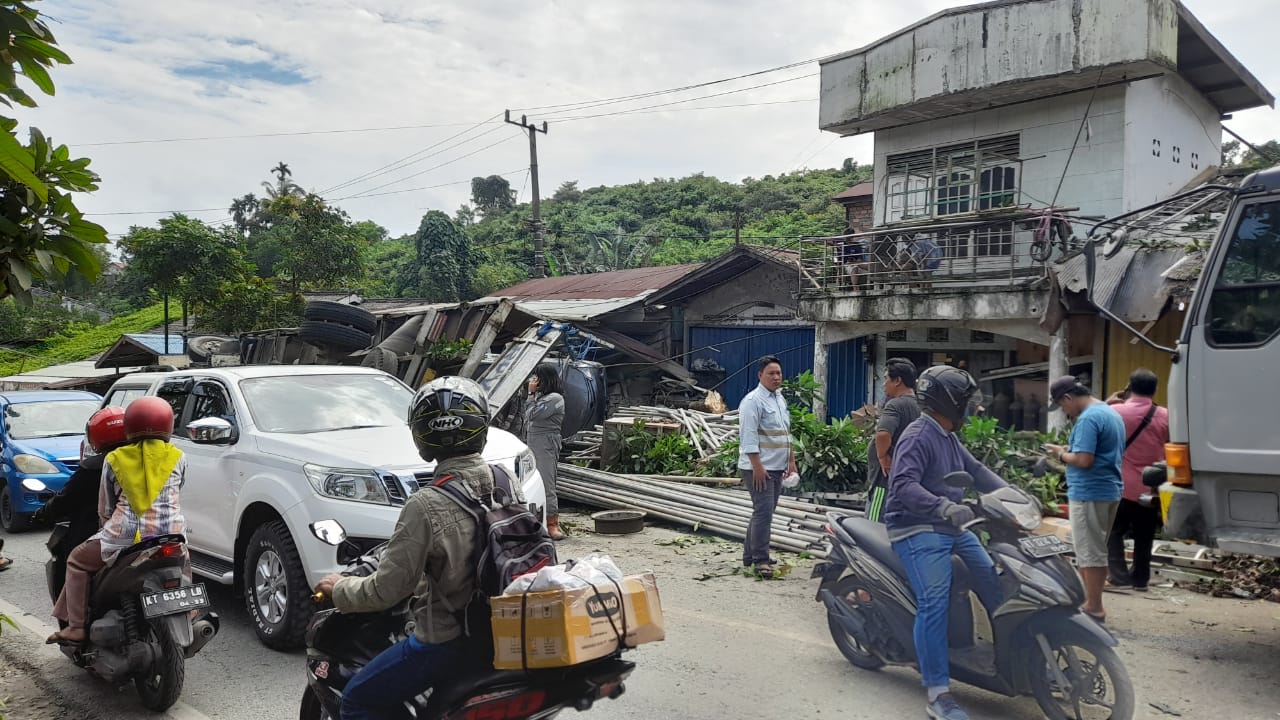 Rem Blong, Truk Tabrak Empat Rumah, Tiga Mobil dan Dua Motor