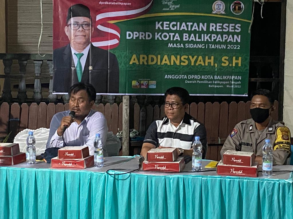 BALIKPAPAN, Inibalikpapan.com – Anggota DPRD Kota Balikpapan Ardiansyah menggelar reses khususnya di wilayah Kelurahan Mekarsari, Kecamatan Balikpapan Tengah, Senin (28/03/2022).