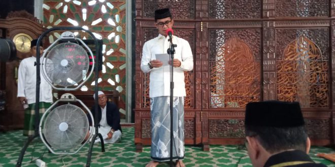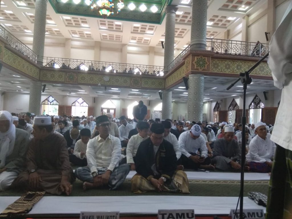Di masjid Agung, selaku imam salat KH. Muhlianur dan Khotib Ustad Agus Chairul Huda. Hadir mewakili pemerintah kota yakni Wakil Wali Kota Rahmad Mas’ud.