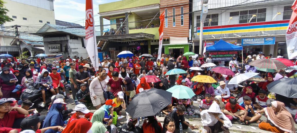 Antusiasme warga terlihat jelas dengan dominannya nuansa merah putih yang dikenakan, menciptakan suasana semangat nasionalisme yang membara.