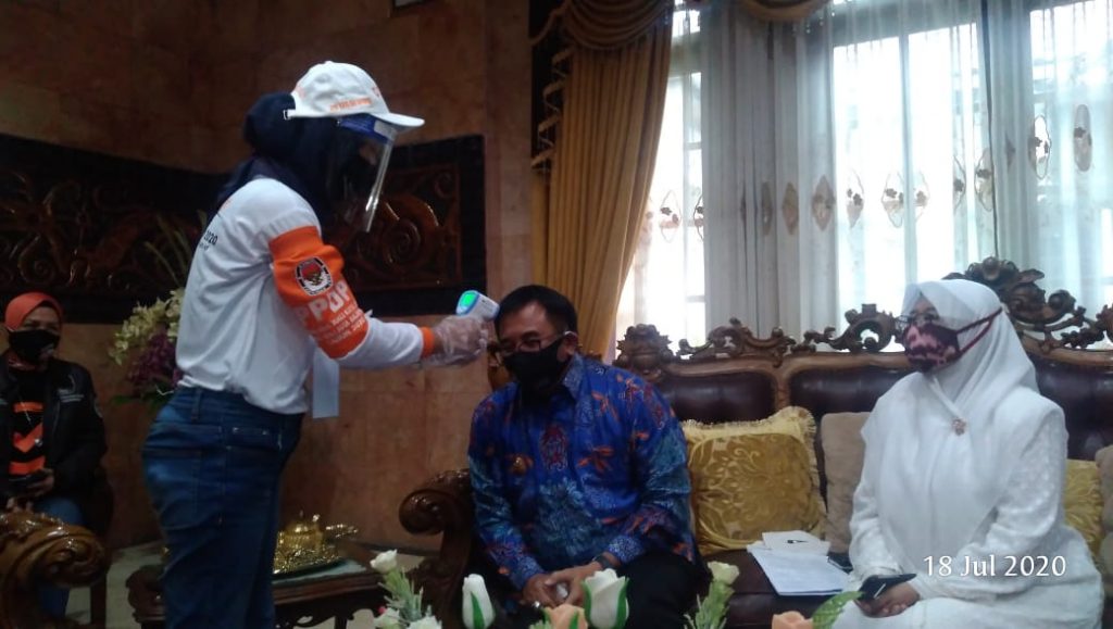 Walikota Balikpapan HM Rizal Effendi menjaga warga dan pejabat di Balikpapan yang pertama dicoklit petugas PPDP. Bersama Ketua KPU Balikpapan Noor Thoha bersama komisioner mendatangi rumah dinas wali kota Jalan Syarifudin Yoes, RT 13 Kelurahan Sepinggan Baru, Balikpapan Selatan, Sabtu siang (18/07/2020).