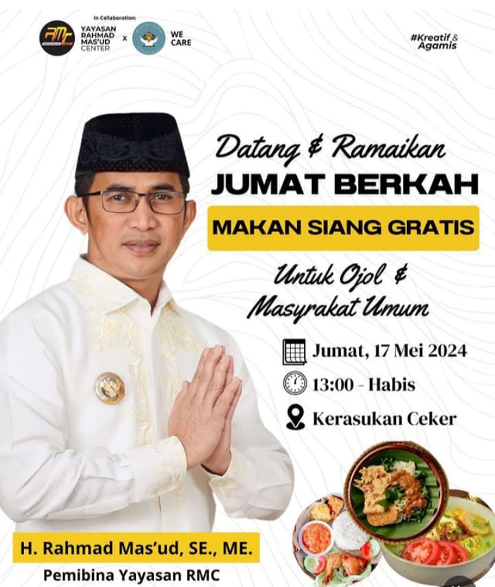 BALIKPAPAN,Inibalikpapan.com – Rahmad Mas’ud Center (RMC) bersama dengan We Care IKN Education Funds mengadakan Jumat berkah dan mengajak para driver ojek online (ojol) serta masyarakat umum makan siang gratis.