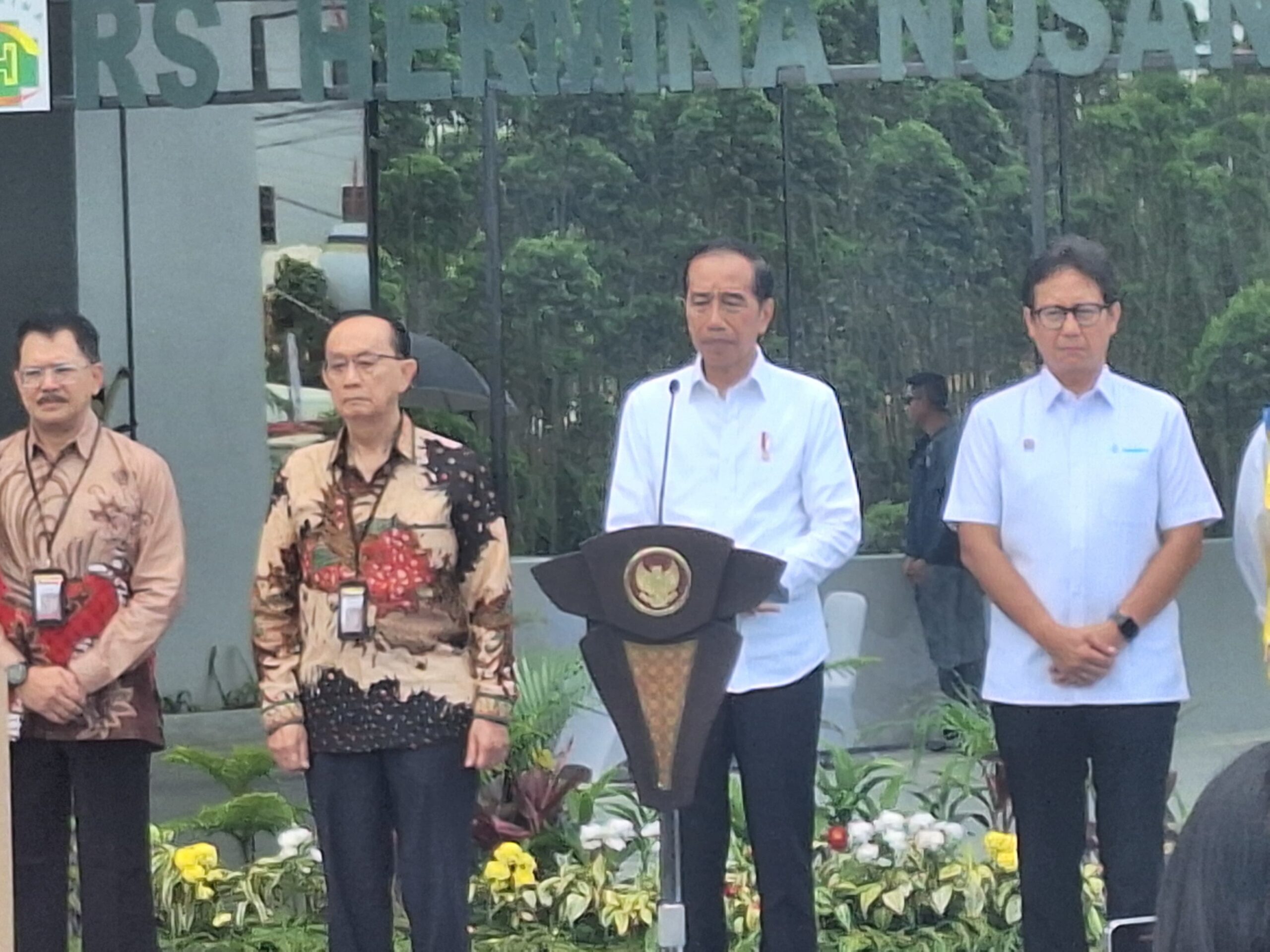 Dalam kesempatan itu Presiden Jokowi menekan tombol sirine dan membubuhkan tanda tangan peresmian RS Hermina Nusantara yang terlihat sangat modern.