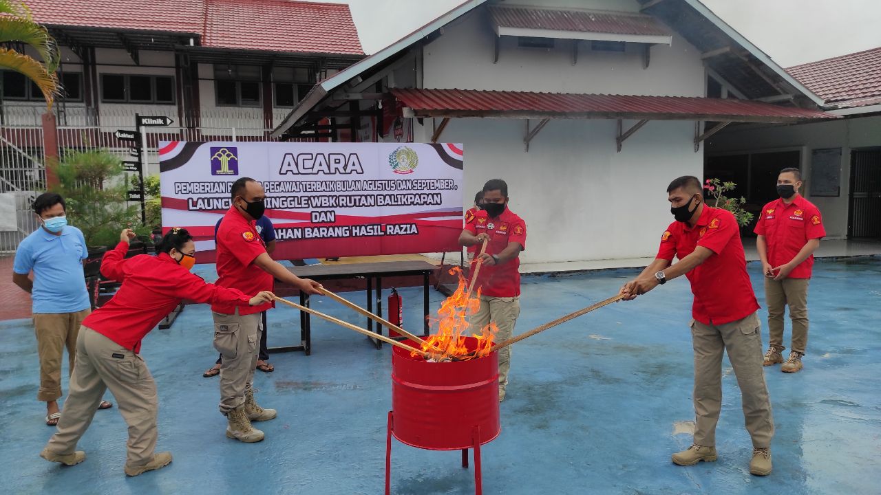 Barang ini dimusnahkan dengan cara dibakar. Proses pemusnahan dipimpin langsung Kepala Rutan Kelas II B Balikpapan Sopiana bersama jajarannya disaksikan dua warga binaan, Sabtu pagi (10/10/2020).