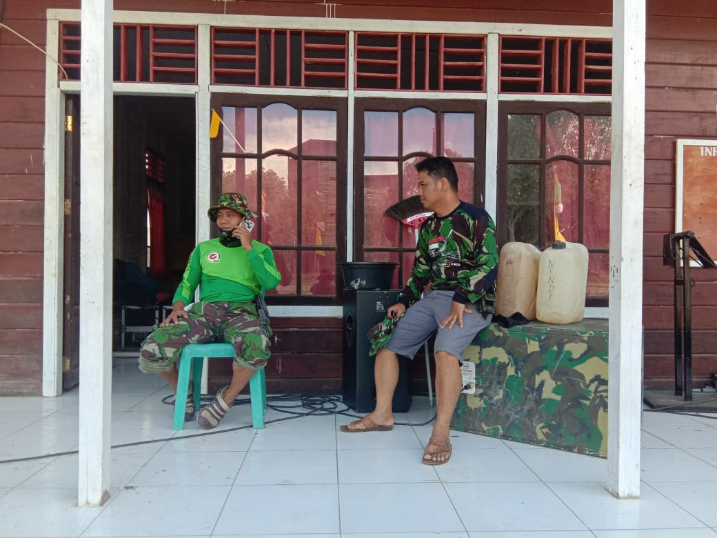 KUTAI BARAT, Inibalikpapan – Anggota Satgas TMMD Reguler ke-107 Kodim 0912/Kutai Barat yang bertugas di lokasi TMMD, Kampung Tanjung Jan Kecamatan Jempang Kabupaten Kutai Barat disaat istirahat siang, selalu menyempatkan diri untuk menghubungi keluarga.