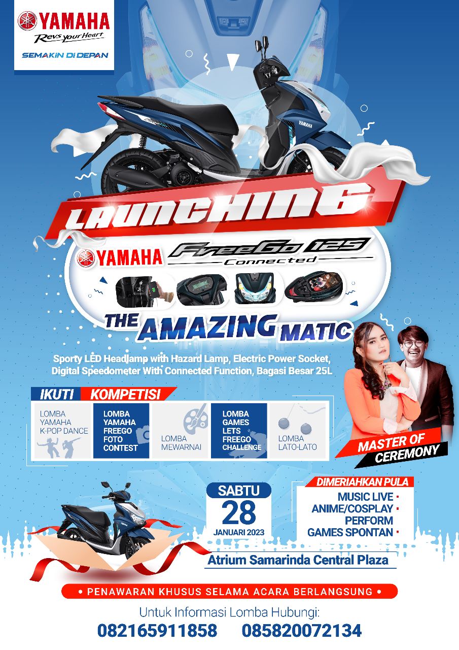 “Sesuai dengan slogan kami, Yamaha Semakin DI Depan. Untuk memenuhi kebutuhan dan merupakan motor yang diimpikan masyarakat kaltimtara, Yamaha New FreeGo Connected 125 ini akan kami launching di Atrium Samarinda Central Plaza juga dimeriahkan dengan beragam hiburan serta lomba. Karena itu bagi seluruh Yamaha Lover Kaltim untuk hadir langsung saat launching nanti,” terang Efendy.