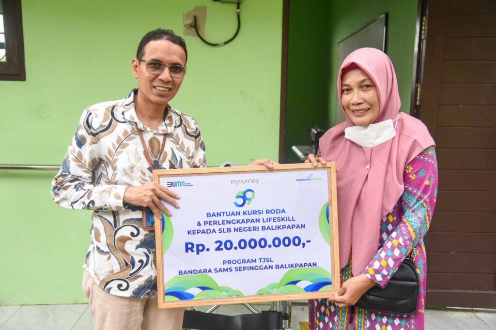 Bantuan diberikan langsung General Manager Bandara SAMS Sepinggan Balikpapan kepada beberapa perwakilan pihak sekolah di sekiolah Luar Biasa Balikpapan. Bantuan berupa satu buah kursi roda, satu set perlengkapan menjahit dan satu set perlengkapan tata boga.
