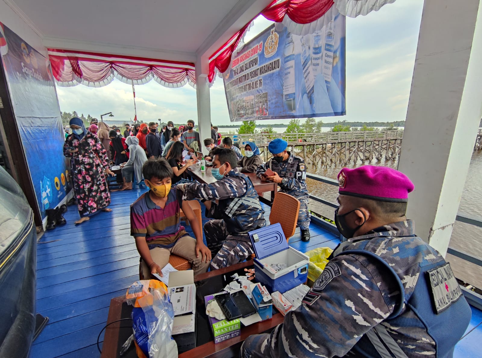 Kegiatan serbuan vaksinasi kali ini diselenggarakan di Posmat TNI AL Marangkayu Lanal Balikpapan bagi masyarakat maritim sekitar Kampung Pangempang Kecamatan Muara Badak, Kamis (2/9/2021)