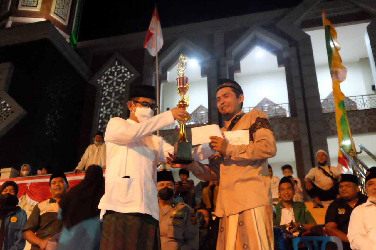 Dalam kesempatan tersebut diserahkan juga piala kepada peserta pawai obor yang meraih juara dengan membuat replika bedug.