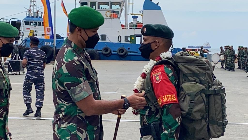 BALIKPAPAN,Inibalikpapan.com — Bertempat di Pelabuhan Semayang, Jumat (8/4/2022) Panglima Kodam VI Mulawarman Mayjend TNI Teguh Pudjo Rumekso menerima kedatangan rombongan Satgas Organik Yonif Raider 613 Raja Alam yang telah bertugas di Papua.