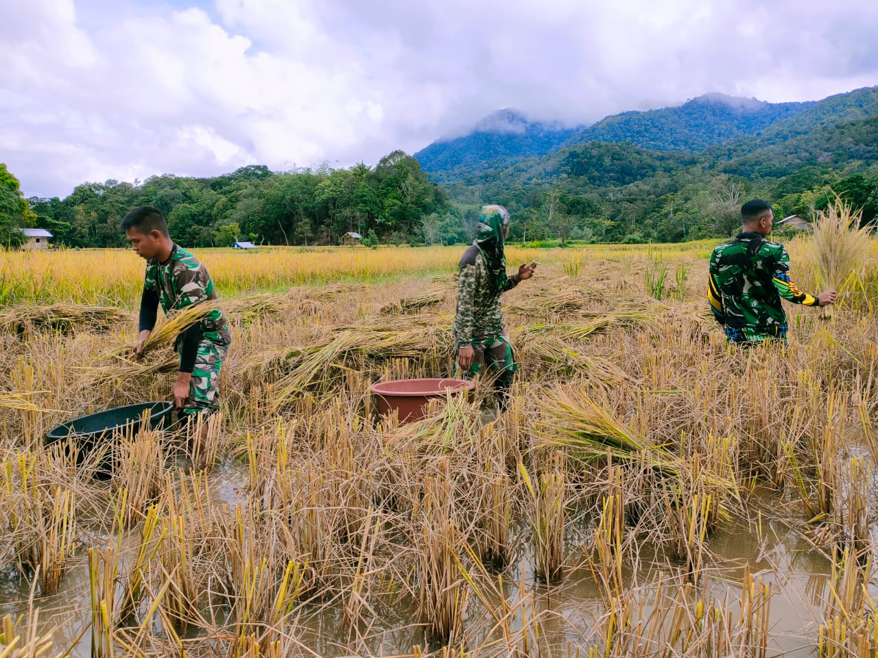 Anggota Pos Long Bawan yang membantu memanen padi di sawah Umar Sinyo yaitu Praka Hendrik, Praka Dwi Mei, Pratu Ginanjar, Pratu Roham, Pratu Reza dan anggota Koramil Long Bawan.